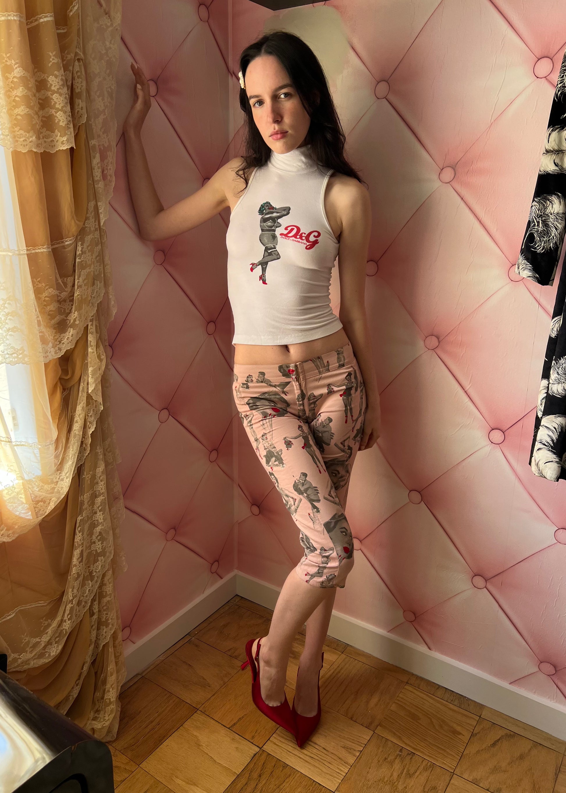 D&G SS2004 PIn-Up Turtleneck Graphic Tank