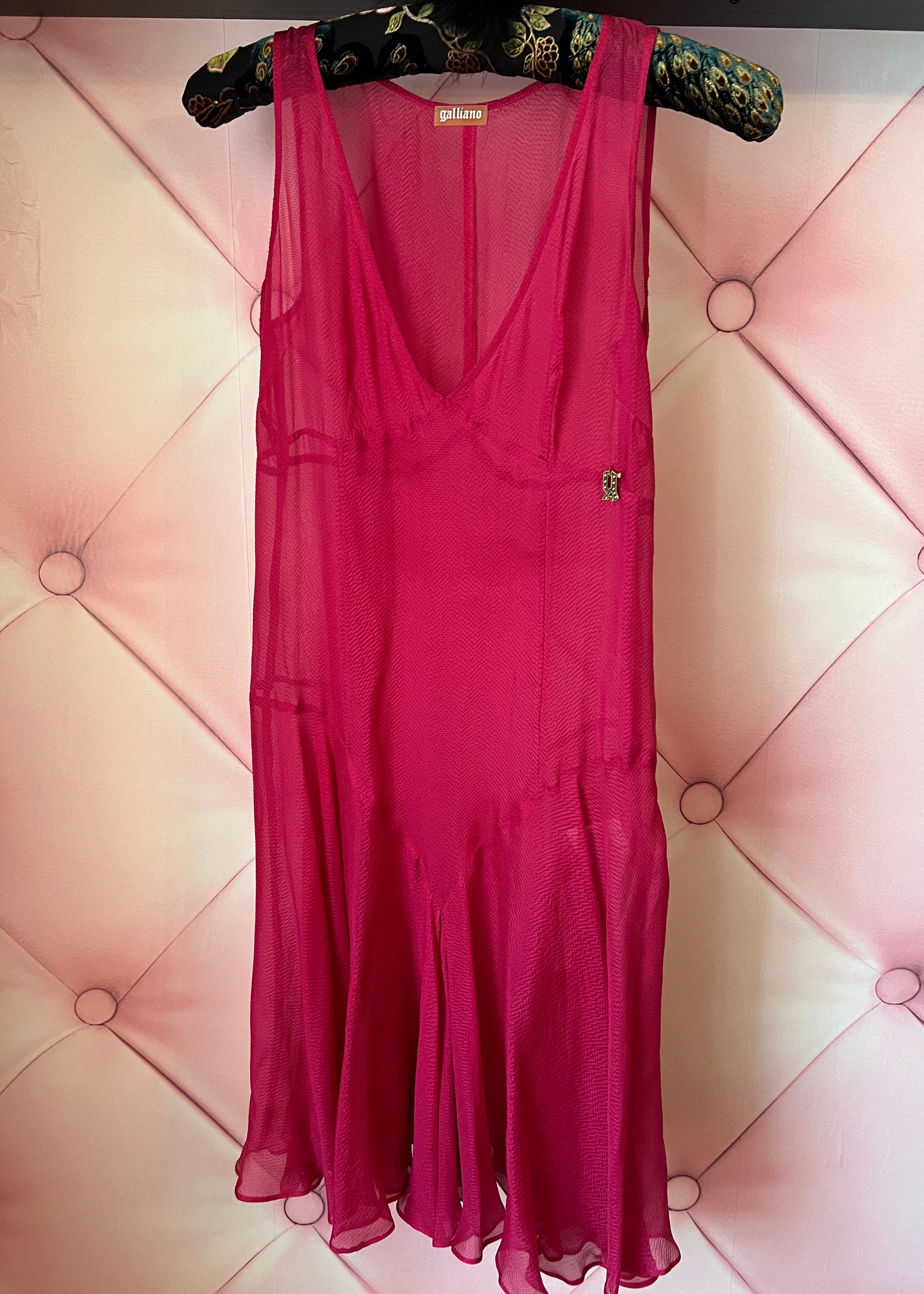 Galliano Hot Pink Sheer Silk Midi Dress