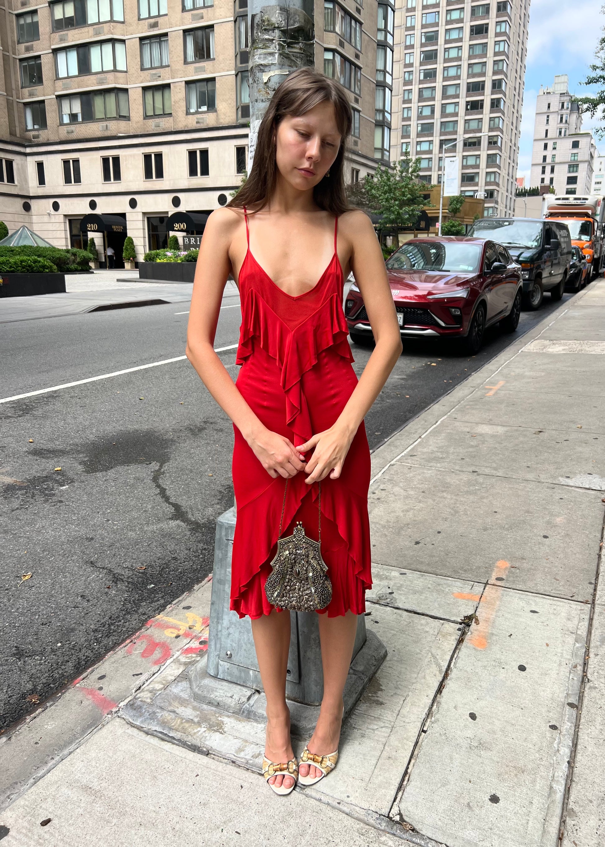 Yves Saint Laurent FW2003 Red Ruffle Dress